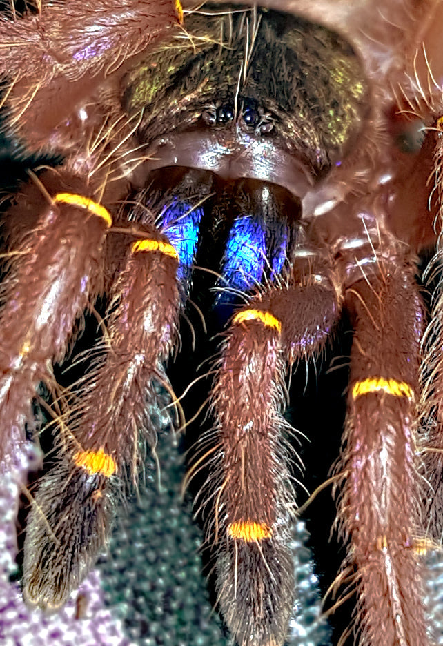 The Ephebopus cyanognathus, commonly known as the Blue Fang Tarantula, is a striking species prized for its vibrant blue chelicerae. This species offers an excellent opportunity for enthusiasts seeking a visually captivating tarantula. Known for its terrestrial habits and fast movements. This tarantula combines unique coloration with engaging behavior, making it a valuable addition to any collection.