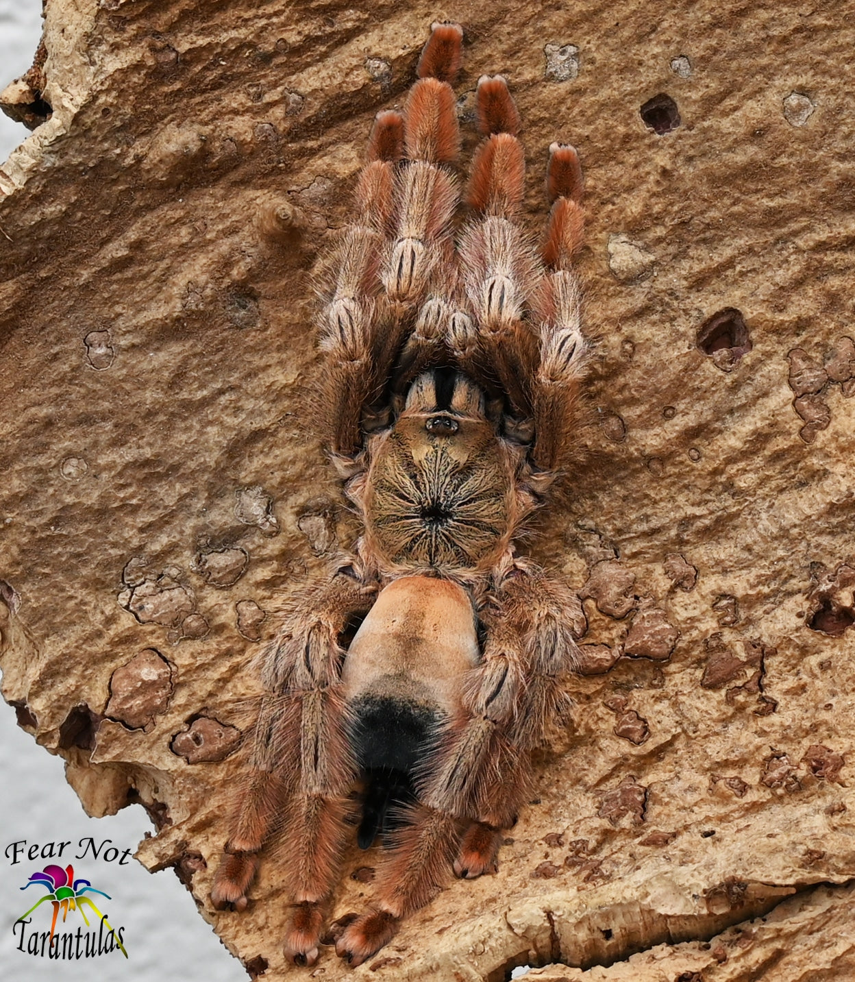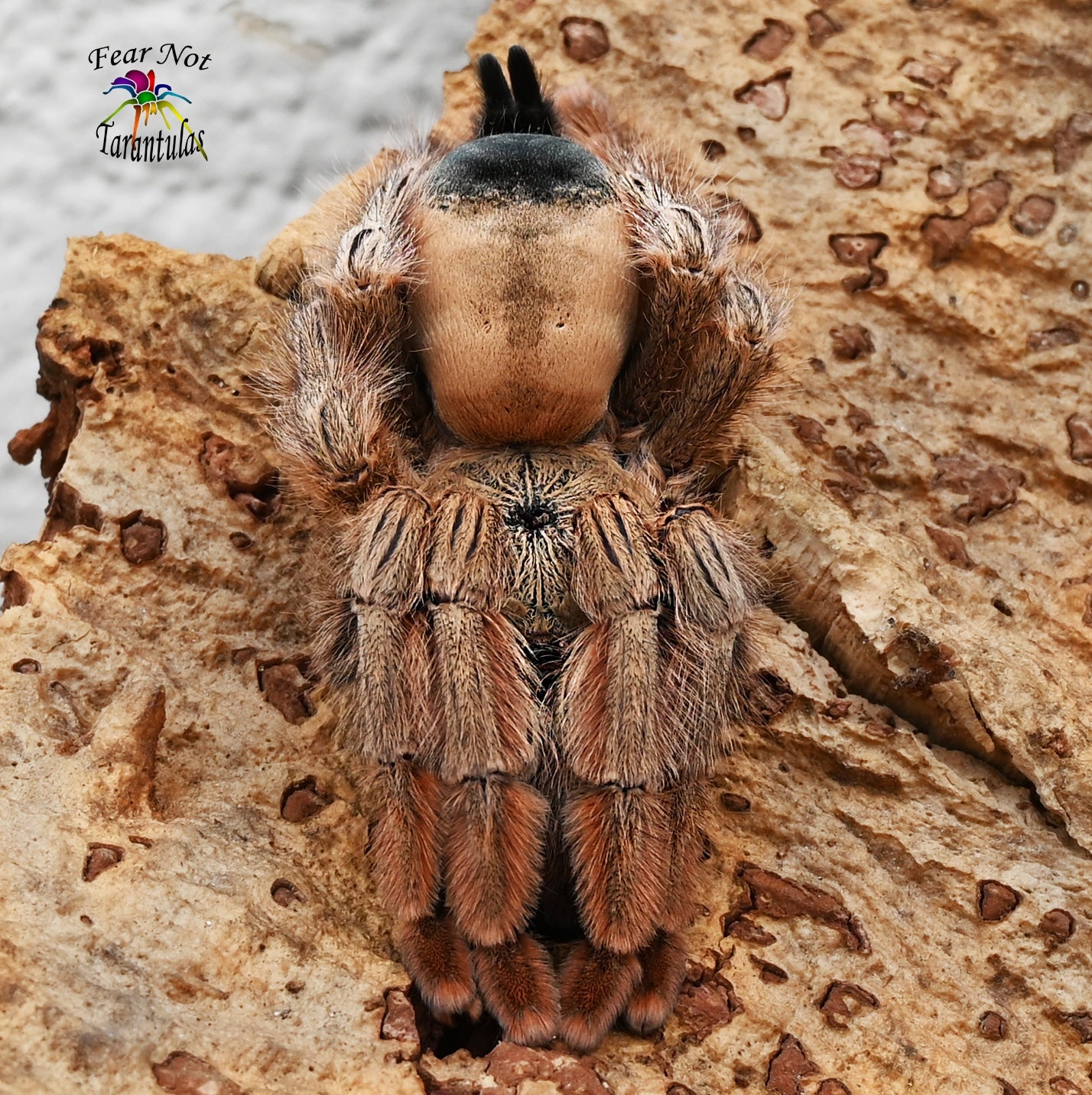 This is a beautiful arboreal species with a shimmery golden carapace and legs contrasted by a black abdomen. While raising this species, we have noticed them to be much calmer than others within this genus. They tend not to be the sprinters that irminia are, and are not as likely to bolt out of their enclosure. They make an excellent display tarantula.